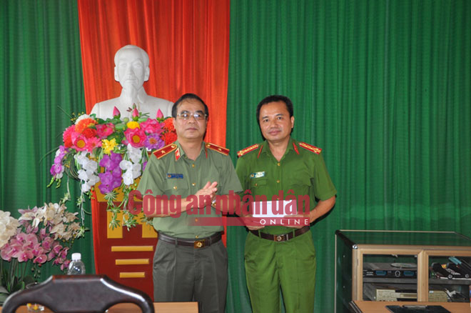 | Thiếu tướng Nguyễn Chi Lăng trao thưởng nóng cho Phòng Cảnh sát hình sự Công an tỉnh Vĩnh Phúc. |
