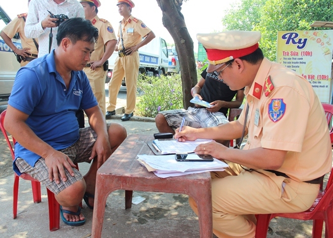 | CSGT Công an tỉnh Thừa Thiên- Huế xử phạt trường hợp vi phạm Luật giao thông đường bộ. |