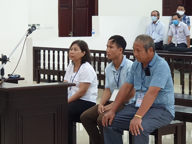 | Ba bị cáo: Nga, Kiên và Giúp tại phiên xử. |