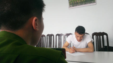 | Tại cơ quan điều tra, đối tượng Nguyễn Quang Thanh vẫn chưa hết biểu hiện “ ngáo đá” |