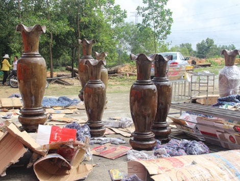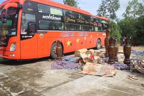 | Nhiều cặp lục bình làm từ gỗ thông nàng được cất giấu trên xe khách. |