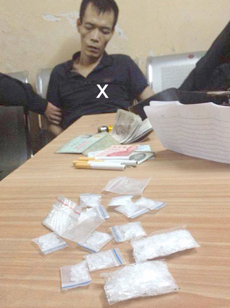 | Đối tượng Hoàng Đức Cường (x) cùng tang vật. |