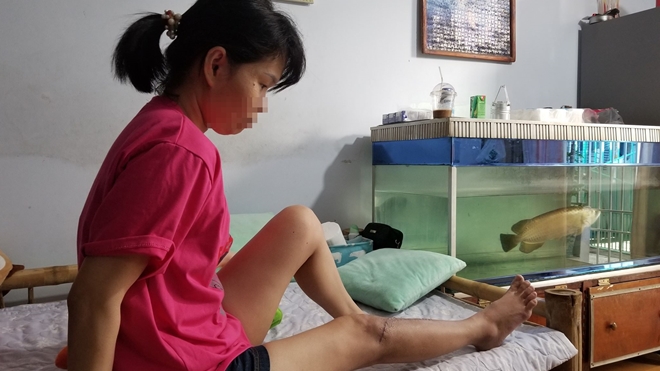 Nạn nhân, nữ kế toán trưởng Trương Thị T. N và thương tích ở chân phải. |