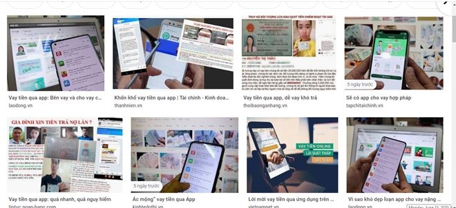Các website, ứng dụng cho vay trực tuyến và nhiều vụ đã xảy ra hậu quả nặng nề được đăng tải trên mạng. |
