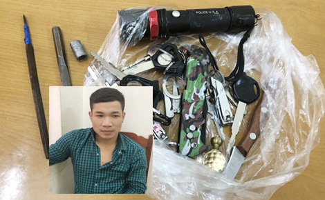 | Đối tượng Hà Đức Mạnh và tang vật một số vụ trộm cắp. |