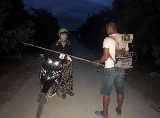Lúc này, Minh điều khiển xe mô tô chạy vượt qua người phụ nữ, sau đó lấy cần xung kích điện dùng để đánh cá chặn xe nạn nhân, đe dọa, uy hiếp và chiếm đoạt số tiền 2 triệu đồng.