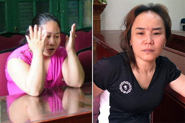 | Lê Thị Hoa và Hoàng Thị Thanh Dung tại cơ quan Công an |