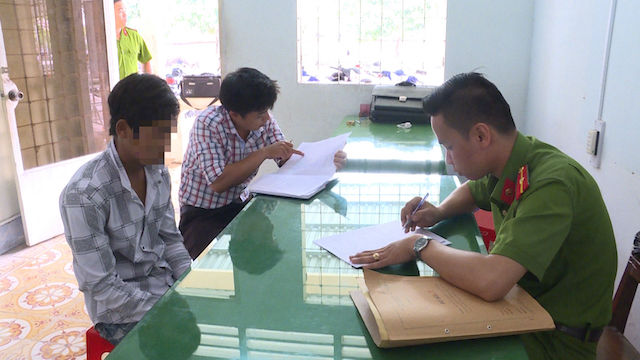 | Cán bộ điều tra lấy lời khai đối với K. và có sự chứng kiến của Trợ giúp viên pháp lý. |