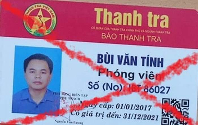 Bước đầu, Bùi Văn Tính tường trình đang làm lái xe cho 1 Công ty Trách nhiệm hưũ hạn, chưa từng làm việc hay cộng tác với Báo Thanh tra. Qua mối quan hệ quen biết, Tính nhờ ngườ làm hộ "Thẻ Phóng viên Báo Thanh tra" với giá hơn 3 triệu đồng.