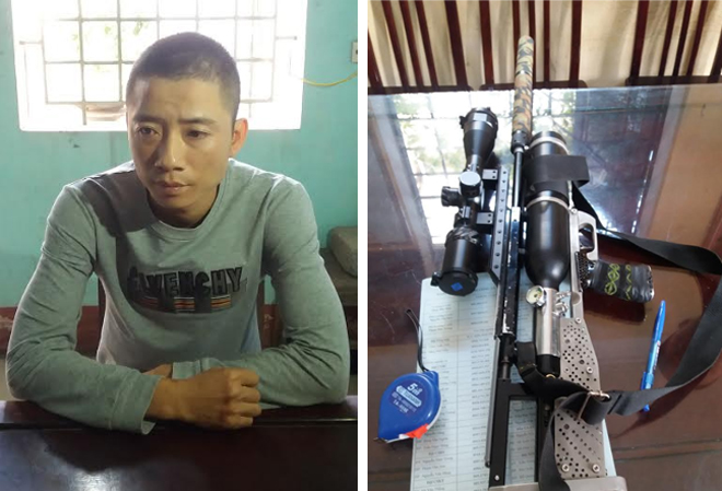 | Triệu Hùng Cường và khẩu súng gây án. |
