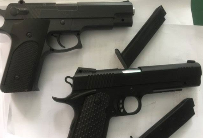 | 2 khẩu súng mà Tuân dùng để thị uy |