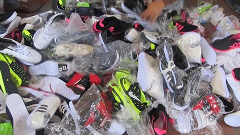 | Các loại giày thể thao đủ màu sắc nhưng không dán nhãn mác. |