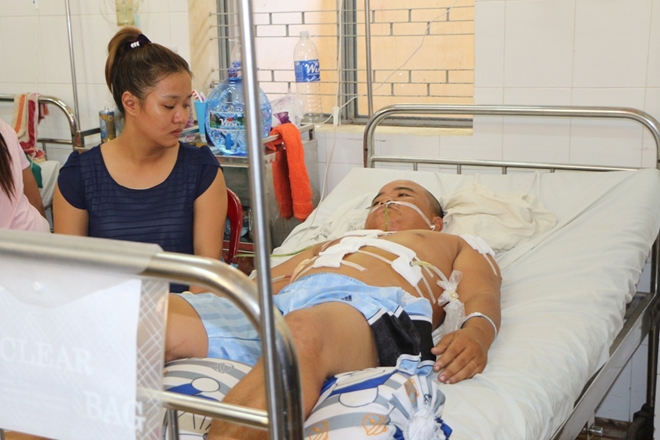 Nạn nhân Lê Văn Tài đang cấp cứu tại bệnh viện.