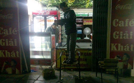 | Quán giải khát khắc phục thiệt hại sau khi nam thanh niên đập phá. |
