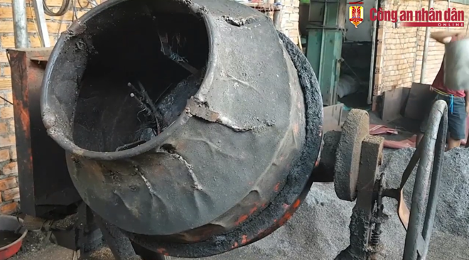 | Dụng cụ, máy móc và công nhân sản xuất tạp chất trộn pin tại xưởng của Loan |