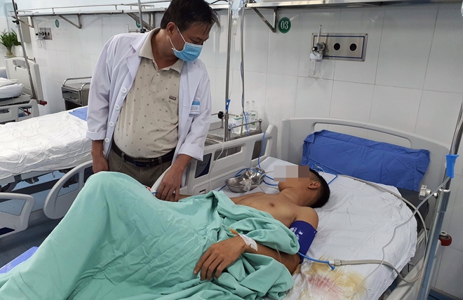 | Nguyễn Thế T. đang điều trị tại bệnh viện. Ảnh: CTV |