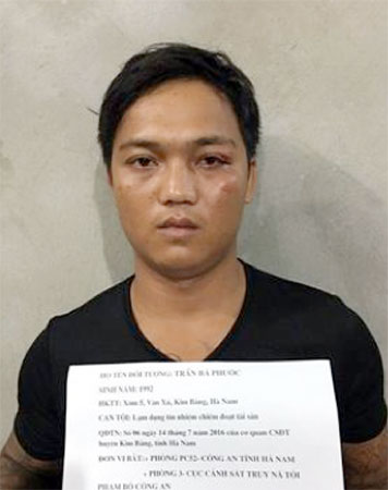 Trước đó, ngày 14-7-2016, Cơ quan Cảnh sát điều tra Công an huyện Kim Bảng, tỉnh Hà Nam đã ra quyết định truy nã đối với đối tượng Trần Bá Phước về tội lạm dụng tín nhiệm chiếm đoạt tài sản.