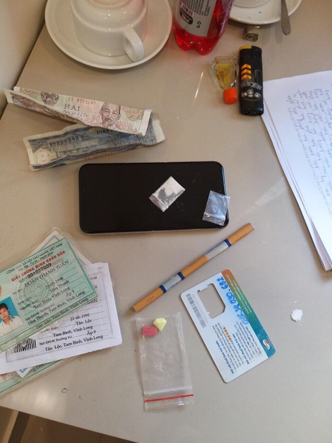 6h sáng 30-5, Phòng Cảnh sát điều tra tội phạm về ma túy Công an tỉnh Vĩnh Long bất ngờ kiểm tra nhà nghỉ Huy Thảo trên đường Phó Cơ Điều (phường 3, TP Vĩnh Long), phát hiện nhóm thanh niên đang sử dụng ma túy tại phòng số 6.