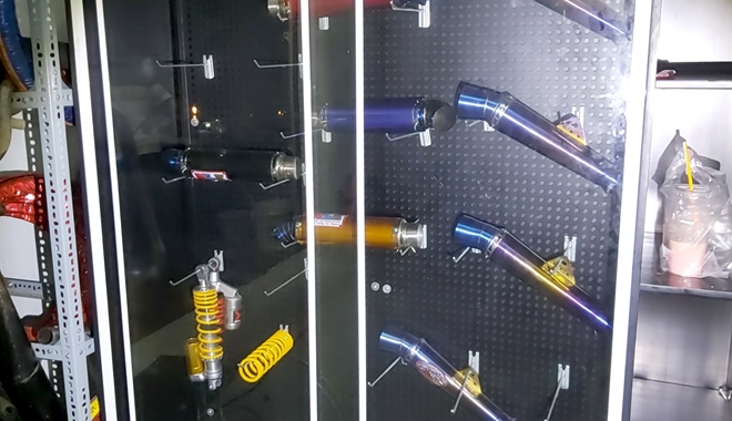 Qua kiểm tra tại đây, lực lượng chức năng phát hiện trong tiệm có nhiều xe máy đang sửa chữa, ngoài ra tại nơi này lực lượng chức năng còn phát hiện nhiều xe máy đã được thay đổi đặc trưng kết cấu hình dán, thay đổi bộ phận giảm thanh của xe máy.