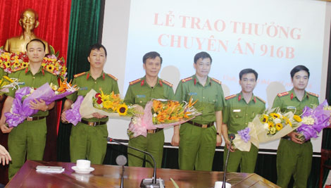 Sáng 8-11, UBND tỉnh Nghệ An, UBND TP Vinh và Công an tỉnh Nghệ An tổ chức khen thưởng Ban chuyên án khám phá vụ đánh bạc quy mô lớn, bắt 14 đối tượng, thu hơn 1,3 tỷ đồng vào ngày 5-11. Thay mặt lãnh đạo tỉnh, đồng chí Lê Xuân Đại đã trao thưởng Ban chuyên án số tiền 30 triệu đồng. Công an tỉnh Nghệ An cũng đã tặng thưởng 5 triệu đồng. H.Thành |