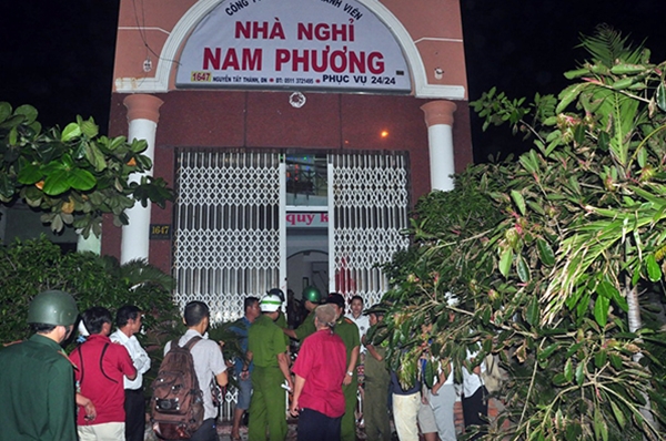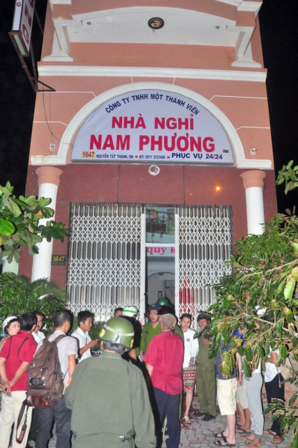 | Công an phường Thanh Khê Tây có mặt tại nhà nghỉ Nam Phương giải quyết sự việc vào tối 23-11-2015. |