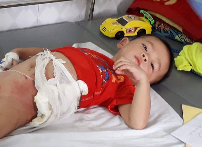 Tại Khoa chấn thương chỉnh hình, Bệnh viện Đa khoa tỉnh Hòa Bình, các bác sĩ đang tích cực điều trị nhiều vết bỏng trên thân thể cho cháu Bùi Nguyễn Thanh Lâm. Vết thương của cháu Lâm bị bỏng độ 2, ở mạn sườn, mông chiếm 6% diện tích cơ thể. Hiện vết thương có mùi hôi đang bị nhiễm trùng, đau rát và chảy dịch và đang được tích cực điều trị.
