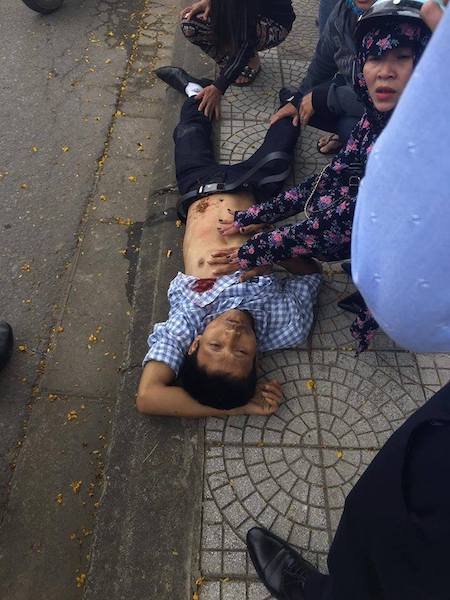 Thấy vậy, anh Lan liền nhắc nhở nhưng nam thiếu niên này không nghe lời mà còn quay sang chửi bới đồng thời chạy xe theo ép anh Lan phải dừng lại. Liền lúc đó, nam thiếu niên bất ngờ rút dao đâm vào người anh Lan 2 nhát, khiến anh này gục xuống.