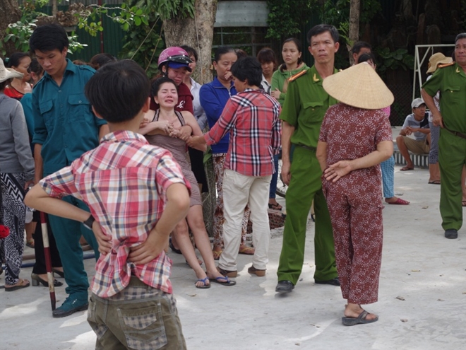 | Thân nhân gia đình và người dân bàng hoàng trước vụ việc. |