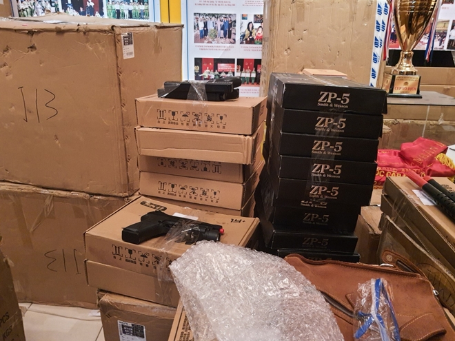 Ngày 28/9, Phòng Cảnh sát hình sự, Công an TP Hà Nội cho biết đã thu giữ 265 khẩu súng hình dạng súng quân dụng, súng ngắn bằng nhựa cùng với hàng chục kg đạn nhựa, đạn thạch có khả năng giãn nở khi ngâm nước vô cùng nguy hiểm, có tính sát thương cao để điều tra, xử lý theo quy định của pháp luật.