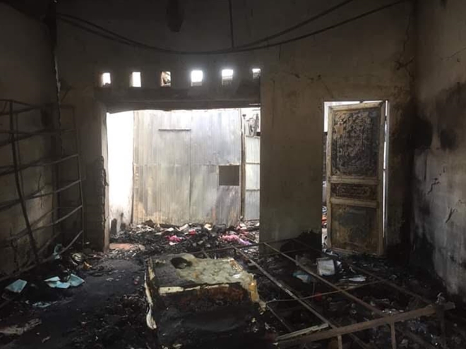 | Cửa hàng bị các đối tượng ném xăng đốt. |