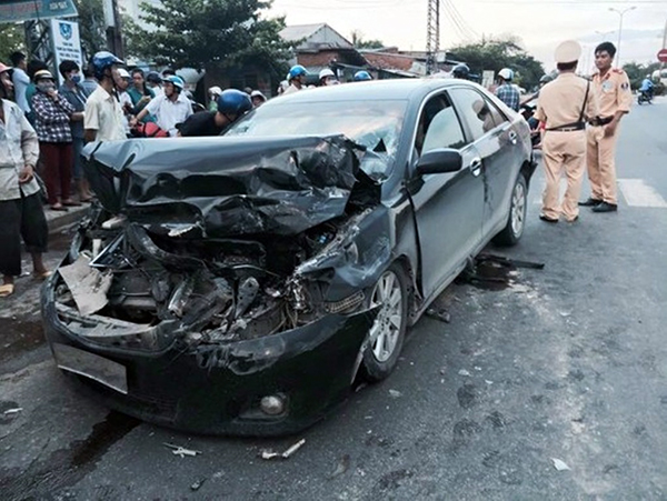 Đầu tiên, xe camry va quệt gây tại nạn cho một xe máy chạy cùng chiều. Vẫn không giảm tốc độ, quái xế này mất lái, rồi tiếp tục đâm sầm vào đuôi xe giường nằm của nhà xe Hoàng Long đang đậu bên lề đường gần đó rồi mới chịu dừng lại. Tuy rất may không có nạn nhân thương vong, nhưng vụ đâm, quẹt này đã khiến đầu của xe camry bẹp dúm, đuôi xe khách hư hỏng nặng.