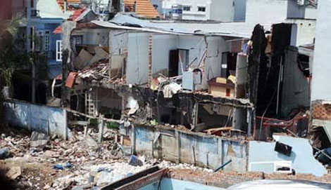 | Hiện trường vụ nổ xảy ra tại Chi nhánh công ty Đặng Huỳnh. |