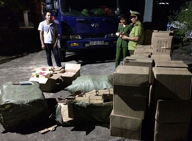 13h ngày 2-8, tại Km7, phường Hải Yên, TP Móng Cái, Đội Quản lý thị trường (QLTT) số 4 phối hợp với Đội tuần tra kiểm soát Giao thông 1-4, Phòng CSGT đường bộ, đường sắt Công an tỉnh kiểm tra xe ô tô BKS: 15B - 005.09, doTrương Văn Tuyên (trú tại Thủy Đường, Thủy Nguyên, Hải Phòng) điều khiển, phát hiện trên xe vận chuyển trái phép 480 bao thuốc lá ngoại nhãn hiệu 555 không có giấy tờ hợp lệ.