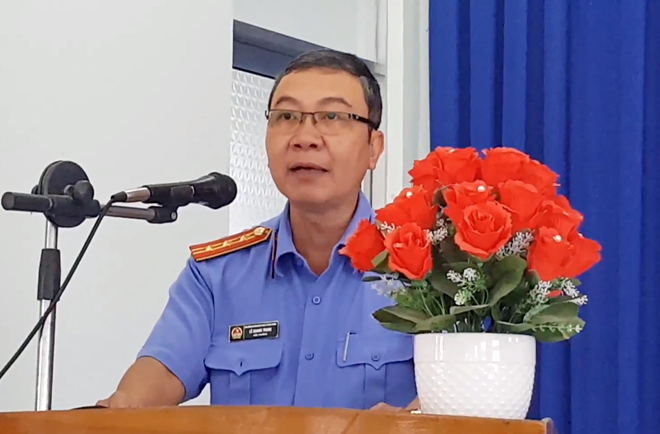 | Viện trưởng Viện KSND TP Nha Trang - ông Lê Quang Trung tóm tắt diễn biến vụ việc đồng thời xin lỗi công khai ông Thái Xuân Đàn và gia đình. Ảnh : P.L |
