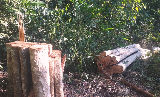 | Nhiều cây gỗ bằng lăng bị đốn hạ tại hiện trường. |