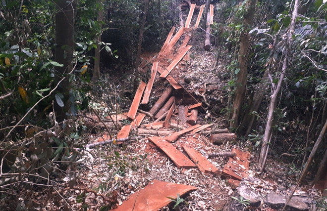Trong khi đó, thống kê sơ bộ của Hạt Kiểm lâm Tuy Đức cho biết, đã có 69 cây gỗ (chủ yếu là bằng lăng) bị cưa hạ để khai thác gỗ trái phép, ước tính có khoảng gần 100m3 gỗ tròn đã bị khai thác.
