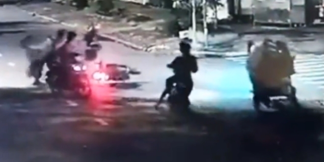 Do cô gái giữ chặt túi xách khiến anh T và cô gái ngã xuống đường. Thiên cùng anh trai vòng xe lại cùng 2 đối tượng khác lao vào đánh anh T và cô gái. Chưa dừng lại các đối tượng này còn sử dụng bình xị hơi cay tấn công 2 nạn nhân.
