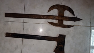 Khám xét nơi ở của các đối tượng, Công an thu giữ nhiều dao phóng lợn, mã tấu, hung khí tự chế.