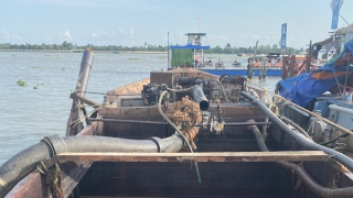 Bắt giữ hàng loạt phương tiện khai thác cát trái phép trên sông Tiền