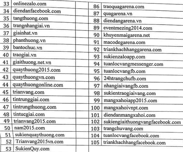 Quá trình điều tra, xác định các đối tượng đã sử dụng tài khoản Facebook gửi tin nhắn có nội dung đăng thông tin trúng thưởng sai sự thật: “Ban quản trị trân trọng thông báo, chúc mừng tài khoản của bạn đã may mắn nhận giải nhất từ chương trình sự kiện vàng tri ân khách hàng. Phần thưởng của bạn bao gồm một xe máy SH (hoặc liberty, Exciter 150; 1 phiếu giá trị tiền mặt 50 triệu đồng (hoặc 100 triệu đồng) và 1 phiếu đổ xăng miễn phí trị giá 5 triệu đồng.