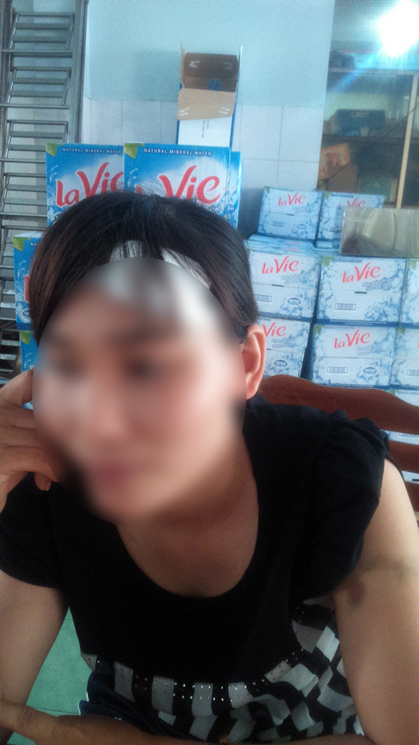 Ngay sau đó, chị Thương được người thân đưa đi cấp cứu tại bệnh viện cấp cứu. Tại đây, chị được bác sỹ xác định, đa chấn thương và phải khâu gần 10 mũi trên trán và bên hông trái. Các vết đánh sưng lên, bầm tím, còn đầu đau nhức, chóng mặt, tai ù không nghe rõ.
