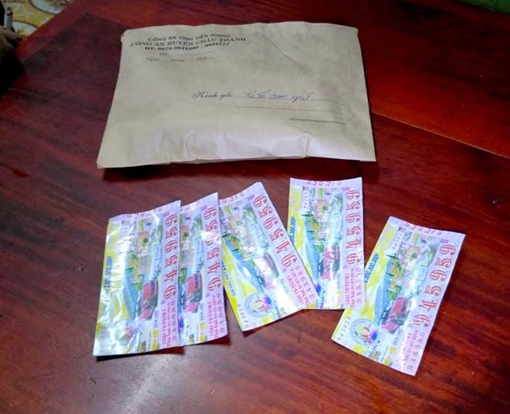 Từ nguồn tin báo của các bị hại, Công an huyện Long Mỹ vào cuộc điều tra, bắt giữ Đan về hành vi dùng vé số giả đi đổi thưởng. Đan khai nhận, mua vé số giả trúng giải 100.000 đồng với giá 40.000 đồng/tờ từ Nhàn.