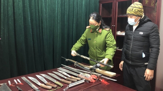 Người đàn ông mang 1 khẩu súng và cả tá đao, kiếm đến trụ sở Công an để giao nộp