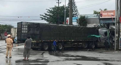 Tài xế ngủ gục lao xe đầu kéo vào chi nhánh ngân hàng