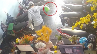 Phong từ ngoài cầm can xăng đi vào liên tục chửi bới “Lần này tao cảnh cáo!” rồi chế xăng vào một miếng vải cầm theo. Chị T cùng một nhân viên khác đang ngồi quầy chưa hiểu chuyện gì xảy ra thì Phong chế xăng lên sàn nhà, khu vực có khoảng 10 xe gắn máy của khách. Phong ném can xăng lại rồi châm lửa vào miếng vải tẩm xăng quăng vào khu vực vừa chế xăng.