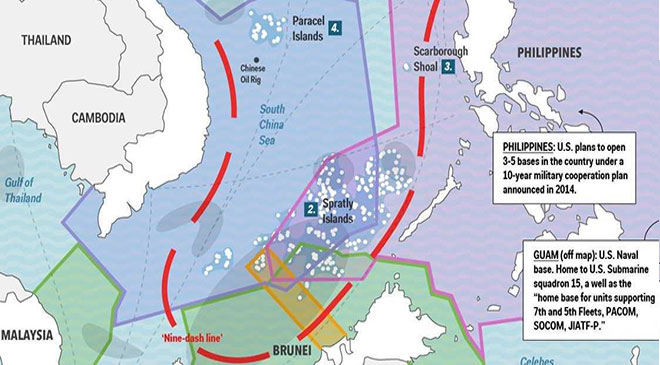 Một khía cạnh nữa cũng được tác giả Bill Gertz đưa vào bài viết của mình chính là việc "Tứ xa" hay "Đường chín đoạn" mà Trung Quốc vẽ ra đã bị tòa án trọng tài LHQ về luật biển bác bỏ trong kết luận về vụ kiện của Philippines đối với Trung Quốc hồi tháng 7 năm ngoái...
