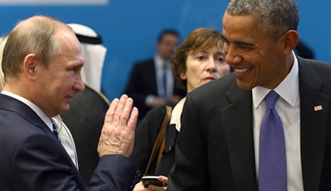 | Tổng thống Nga Vladimir Putin (trái) và người đồng cấp Mỹ Barack Obama trong một lần gặp gỡ mới đây. Ảnh: Sputnik. |