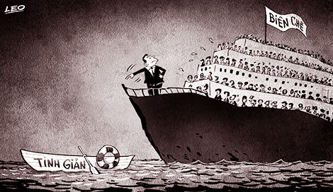 Và để có được sự linh hoạt gọn nhẹ ấy, nhiệm vụ tiên quyết phải thực hiện chính là phải ổn định lại bộ máy chính trị bằng cách cải cách mạnh mẽ, đổi mới triệt để, đúng như nhận định của nguyên Tổng Bí thư Lê Khả Phiêu đã nói trong bài phỏng vấn của Báo Tuổi Trẻ gần đây rằng: “Như cốc nước đã đầy tràn. Bây giờ không còn đường lùi, lùi là chết, lùi là trì trệ công việc. Do hình thức của bộ máy đã trì trệ chứ chưa nói đến con người”.