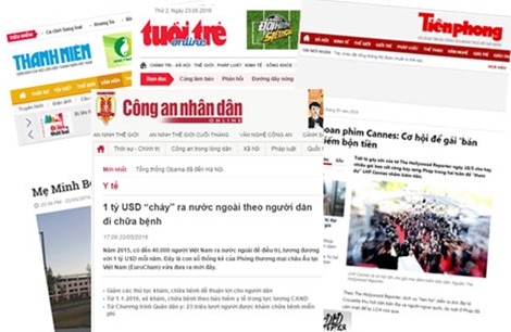 1. Tờ Công an nhân dân Online (www.cand.com.vn) đưa tin: "1 tỷ USD "chảy" ra nước ngoài theo người dân đi chữa bệnh".