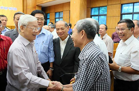 | Tổng Bí thư, Chủ tịch nước Nguyễn Phú Trọng trao đổi với cử tri TP Hà Nội trước thềm Kỳ họp thứ 8 Quốc hội Khóa XIV. |